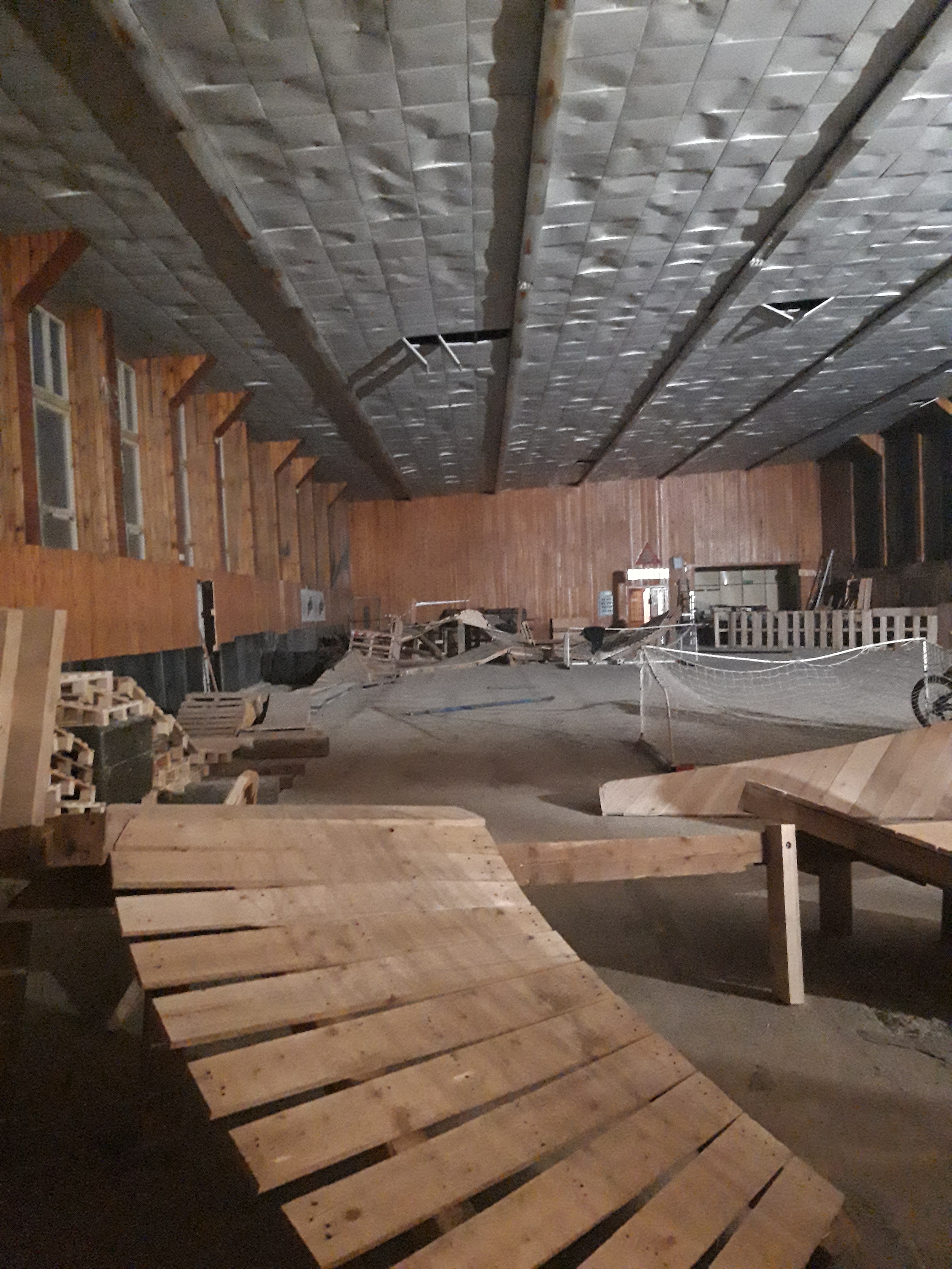V hale sa momentálne nachádza niekoľko prvkov, ktoré tvoria variabilný okruh pre MTB, štartovacia rampa pre BMX race, niekoľko prvkov pre cyklotriál a stred priestoru je voľná plocha, ktorá slúži pre rôzne cvičenia na rovine. Jej rozmer je 14x11metrov, čo je ihrisko pre bicyklebal, ktorý aj keď v zjednodušenej forme používame pri tréningoch. Mojim cieľom je túto disciplínu znova „oživiť“ dobudovaním vhodného povrchu.