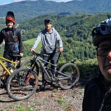 Dnes sme mali s Adamom 3 hodinový MTB tréning. Super. Je to neporovnateľne lepšie ako sa učiť z videí. Bol som ja na ebiku a syn so zaťkom na HT. Adam to vedel zosúladiť. Teda mne to dalo riadne zabrať s 25 kg ebikom sa učiť Bunny hop . Myslím, že o rok si to zopakujeme.